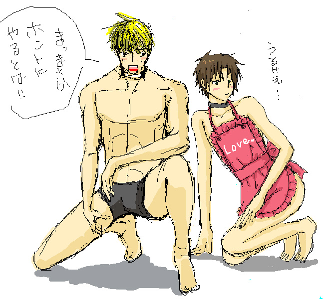 デッサン練習にポーズ集みながら描いてたらKさんが隣に裸エプロンの坊ったん描いてくれました。